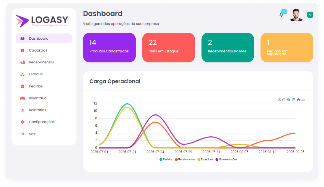 O Logasy é um sistema WMS (Warehouse Management System) desenvolvido para simplificar a gestão de armazéns, oferecendo controle total desde o recebimento até a expedição, com tecnologia 100% online e auditável.