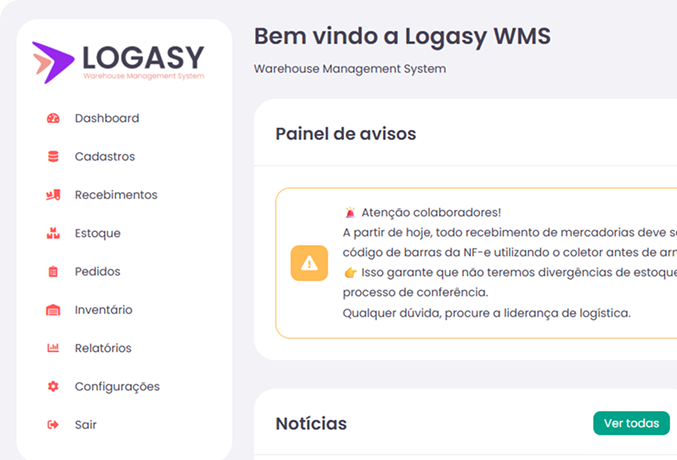O Logasy é muito mais que um software de gerenciamento de armazém (WMS). É uma plataforma inteligente, pensada para otimizar cada etapa do processo logístico, desde o recebimento de mercadorias até a expedição final.